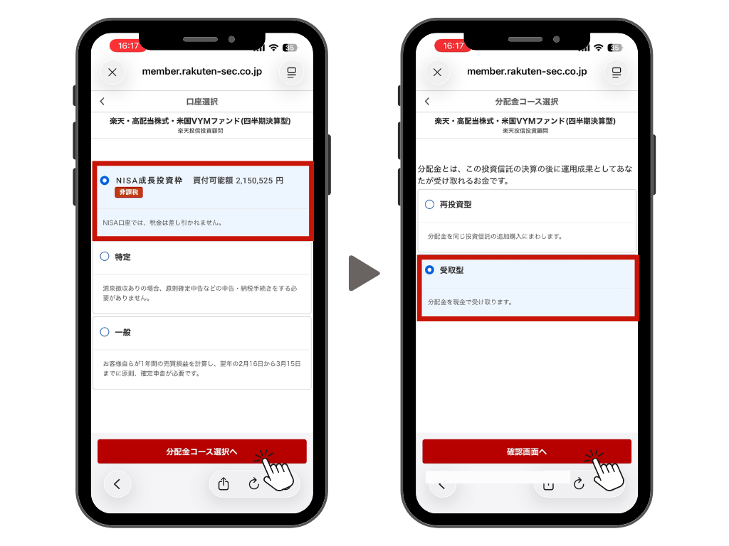 分配金コースは、現金で配当を受け取りたい場合は【受取型】(今回はこっち)