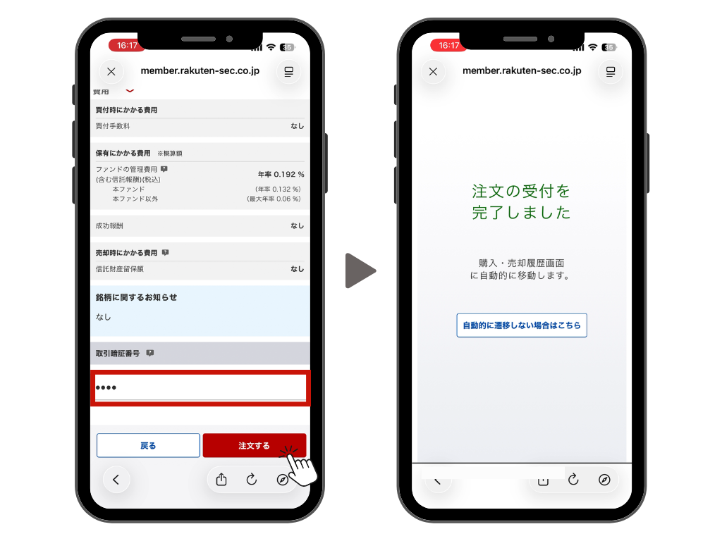 最後に注文内容を確認し、取引暗証番号を入力、【注文する】をタップで注文完了💡