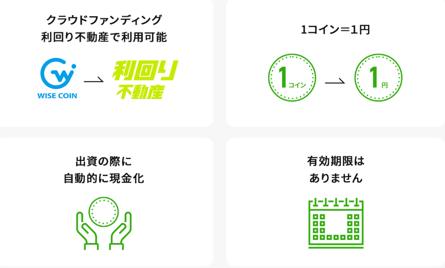 『利回り不動産』の運営会社【株式会社ワイズホールディングス】が独自に発行しているコイン。