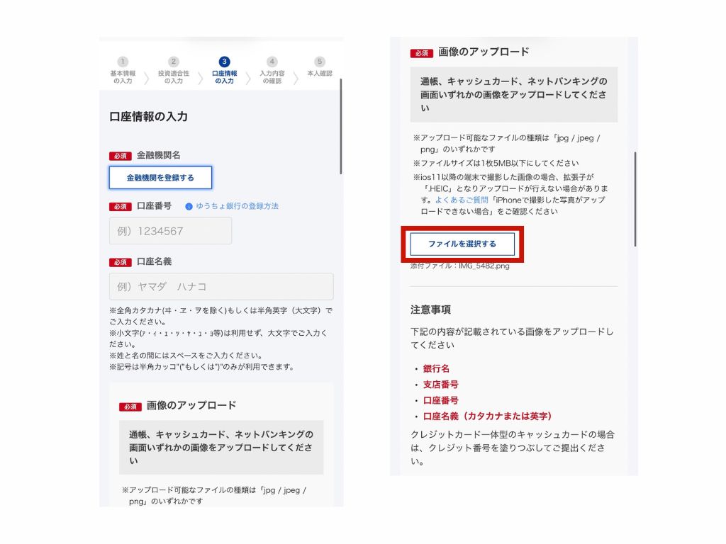 普段よく使う銀行情報を入れていき、証明画像をアップロードしたら「確認画面に進む」をタップしてね。