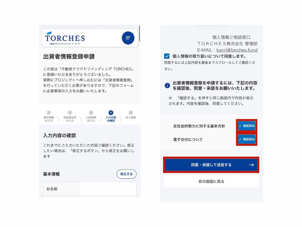 問題がなかったら、最後に2つの書類を確認し「同意・承諾して送信する」をタップ!